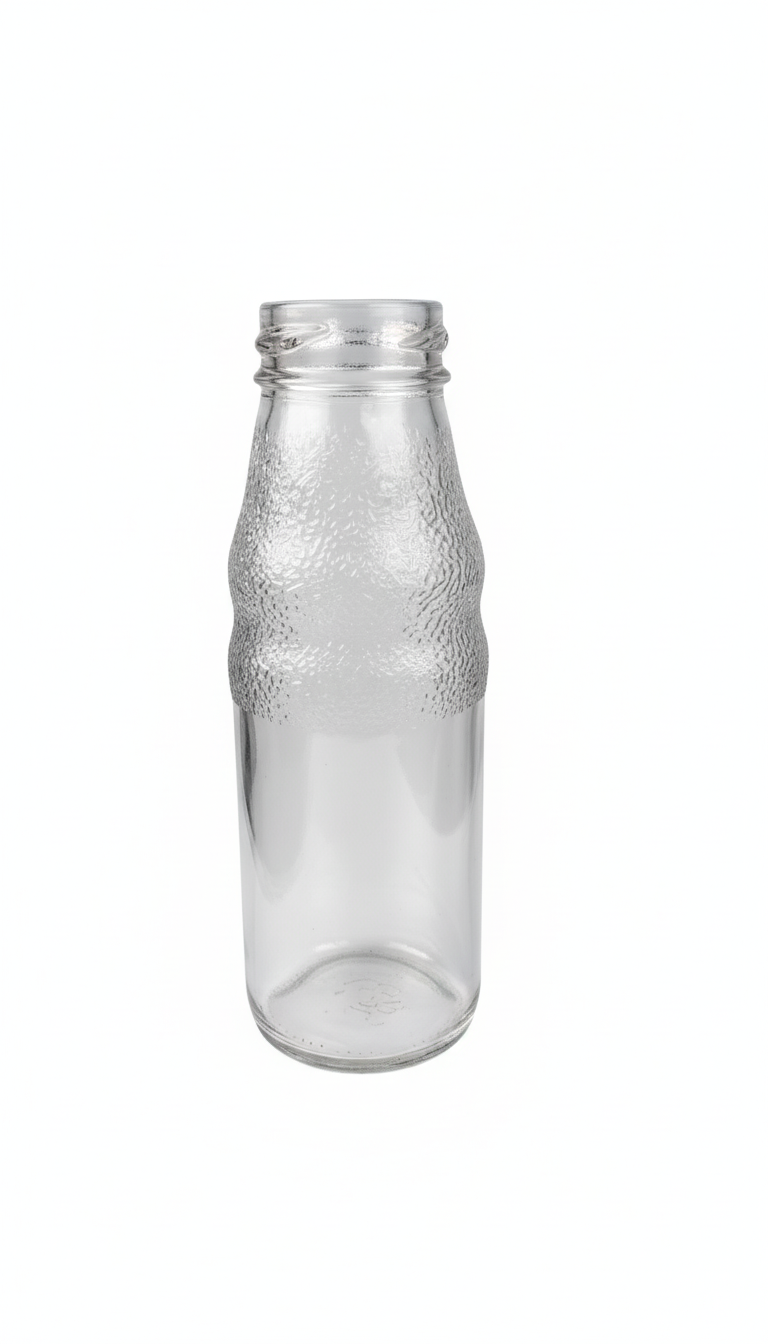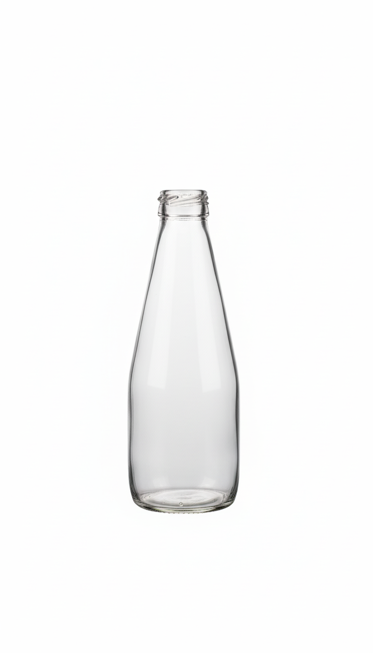 زجاجة زجاجية للعصائر والمشروبات، مناسبة للتعبئة الأوتوماتيكية والتعبئة للاستخدام التجاري.